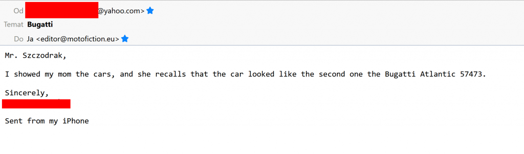 Thanks to Ante’s great work, we have been informed about the gentleman’s real name. When we contacted him, we learned that the friend of his father (i.e. the person who had reportedly seen the Atlantic) was Mr. Bernard Pinault (https://crankhandleblog.com/articles/the-splendid-prototype-of-a-t57-gangloff-roadster/, https://waimakclassiccars.co.nz/listings/bugatti-gangloff-type-57-1934/). Mr. Pinault’s encounter with the car might have taken place somewhere in Nigeria.