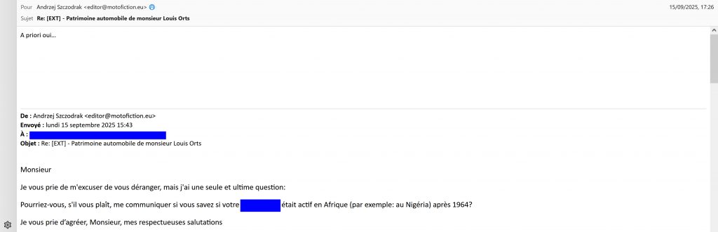 Another thing, indirectly linked to the mail quoted above, is that Mr. Orts had been divorced since 1945. Most information his ex-wife and children is linked to Belgium, while Mr. Orts’ death place is a French town named Yerres. Does it sound like a description of a person that we are looking for?