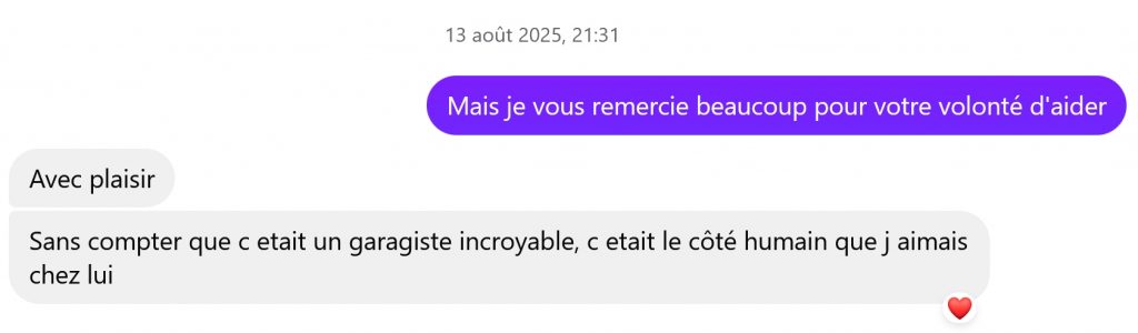 which translates to - Mr. Frédéric not seeking fame (he told me the story because I had been asking about Mr. Duhoux and the Garage Métro)