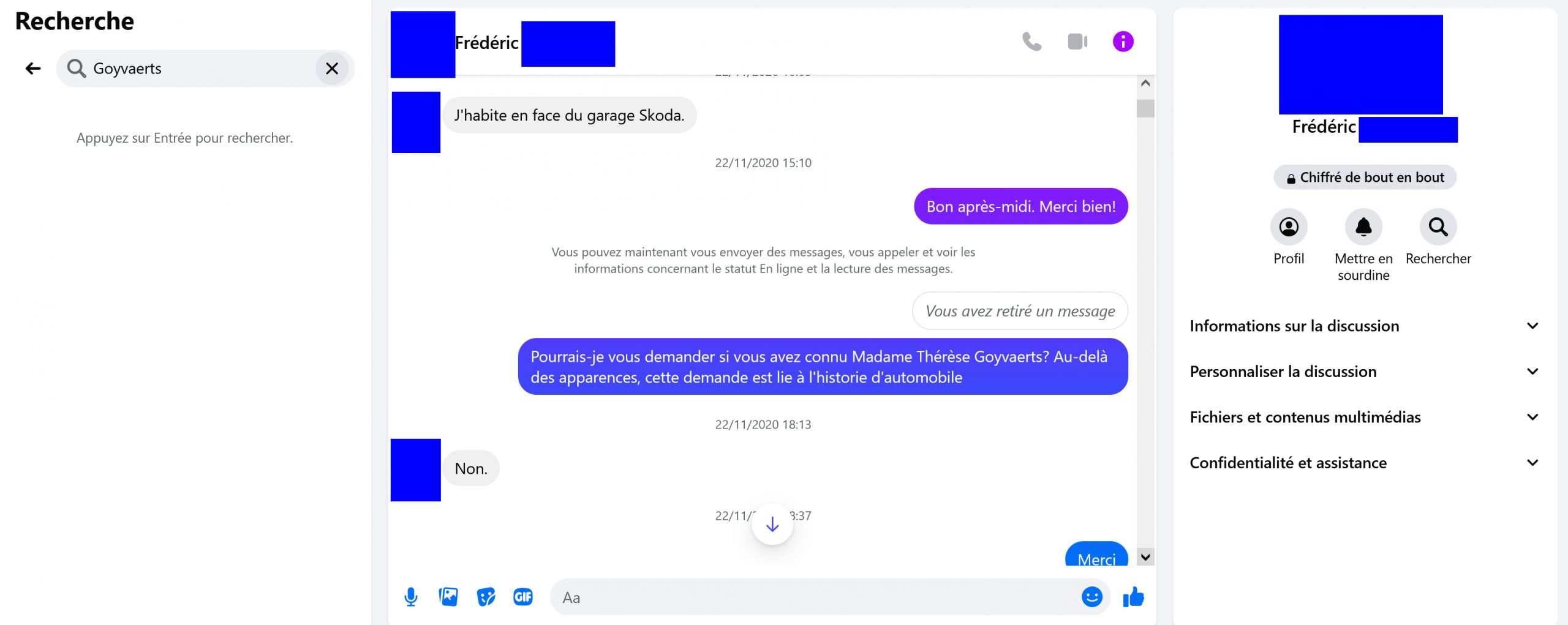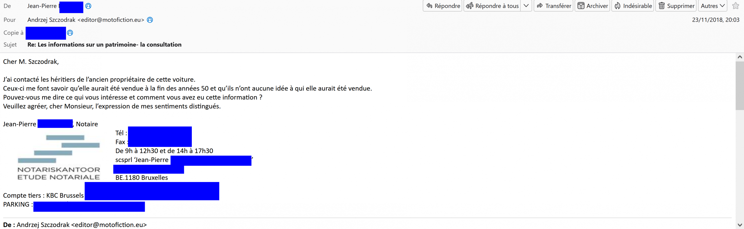 (I masked the introduction which reveals the degree of relationship between my interlocutor and Mr. Philippe Henricot).