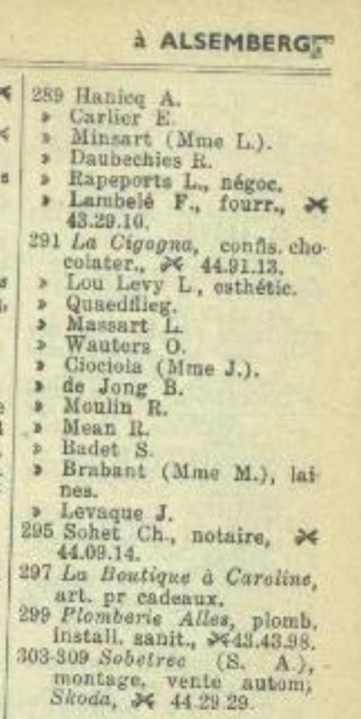 Why would Mr. Gabriel Duhoux leave the car in the showroom which had been owned by his brother? Such decision might seem odd as at some point of time the Duhoux brothers parted ways. At first, it would be good to be sure that the car has ever been placed in that building. The clues provided by Mrs. Thérèse Goyvaerts’ family member and the description given by a person related to Mr. Philippe Henricot clearly indicate that the showroom at 303-309, Chaussée d’Alsemberg was, most likely, the place where the Atlantic was brought in 1946. Then, there are two breakthrough years- 1949 when the Garage Métro was taken over by Mr. “P. Duhoux” (either Mr. Norbert using his “original” name or, more probably, Mr. Pierre Joseph Duhoux- https://gw.geneanet.org/bois?n=duhoux&oc=7&p=pierre+joseph&type=fiche) and 1952 when Mr. Philippe Henricot bought the showroom.